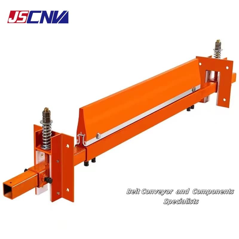 Der Einlinienreiniger dient der Reinigung des Rücklaufbandes. Es wird hauptsächlich vor der hinteren Umlenkrolle und vor der schweren vertikalen Spannvorrichtung des Bandförderers eingesetzt. Es kann insbesondere zum Reinigen des leeren Abschnitts des Zwei-Wege-Laufbands verwendet werden. Es zeichnet sich durch Säure- und Alkalibeständigkeit, Flammschutzmittel und Antistatik sowie eine hohe Verschleißfestigkeit aus und beschädigt den Riemen nicht. Die Klinge besteht aus hochfestem Polyurethan, das V-förmige Design gewährleistet die Sauberkeit des Bandes und die automatische Schwerkraftkonstruktion sorgt für einen automatischen Ausgleich, wenn die Klinge abgenutzt ist.